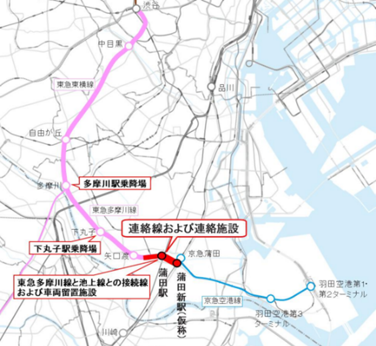 現在の両駅はバスで数分(現金支払なら100円)、徒歩でも15分ほどで移動可能な近距離にあるが、鉄道上は分断され、空港や都心方面への乗り換え効率が悪い。この短い区間を鉄道で結ぶことで、東京区部南部のいわゆる「城南エリア」(目黒区・品川区・大田区・港区・世田谷区・渋谷区とされる)の交通動線を再編し、空港アクセスをより便利にする―それが蒲蒲線の狙いの一つである。