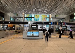 (写真左)路面電車の乗り場は従来の1階からJRと同じフロアの2階に移動した。