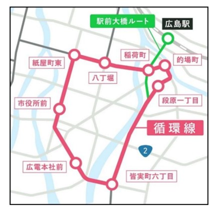 この循環線は、広電本社前を起点として、比治山エリアと中心市街地を結ぶ形で運行され、中心市街地を抱える広島市中区の多くをカバーする運行エリアとなっている。