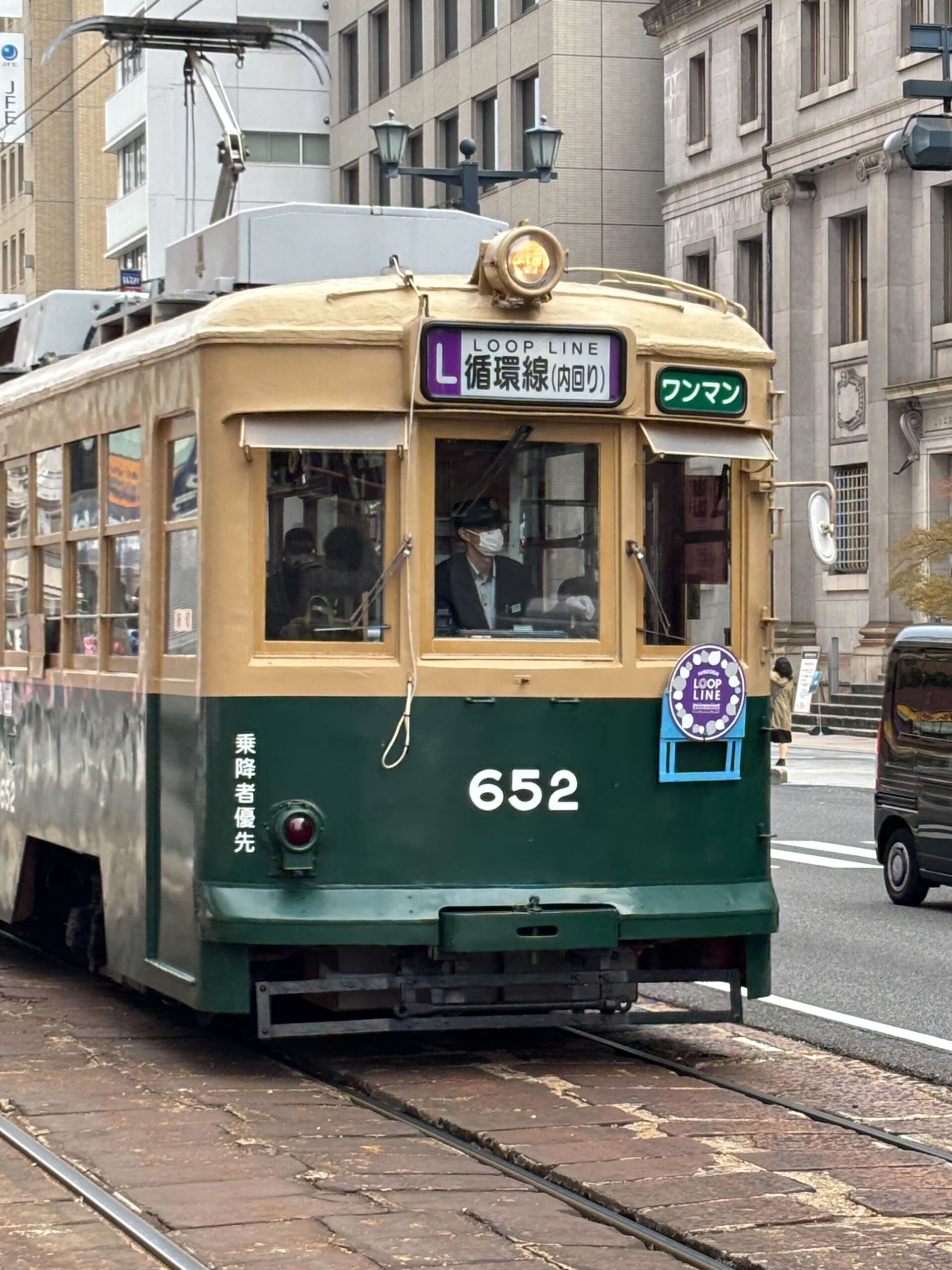 (写真左)循環線の様子。乗車数の多い広島港行や宮島口行は3両編成だが、循環線は1両編成となっている。