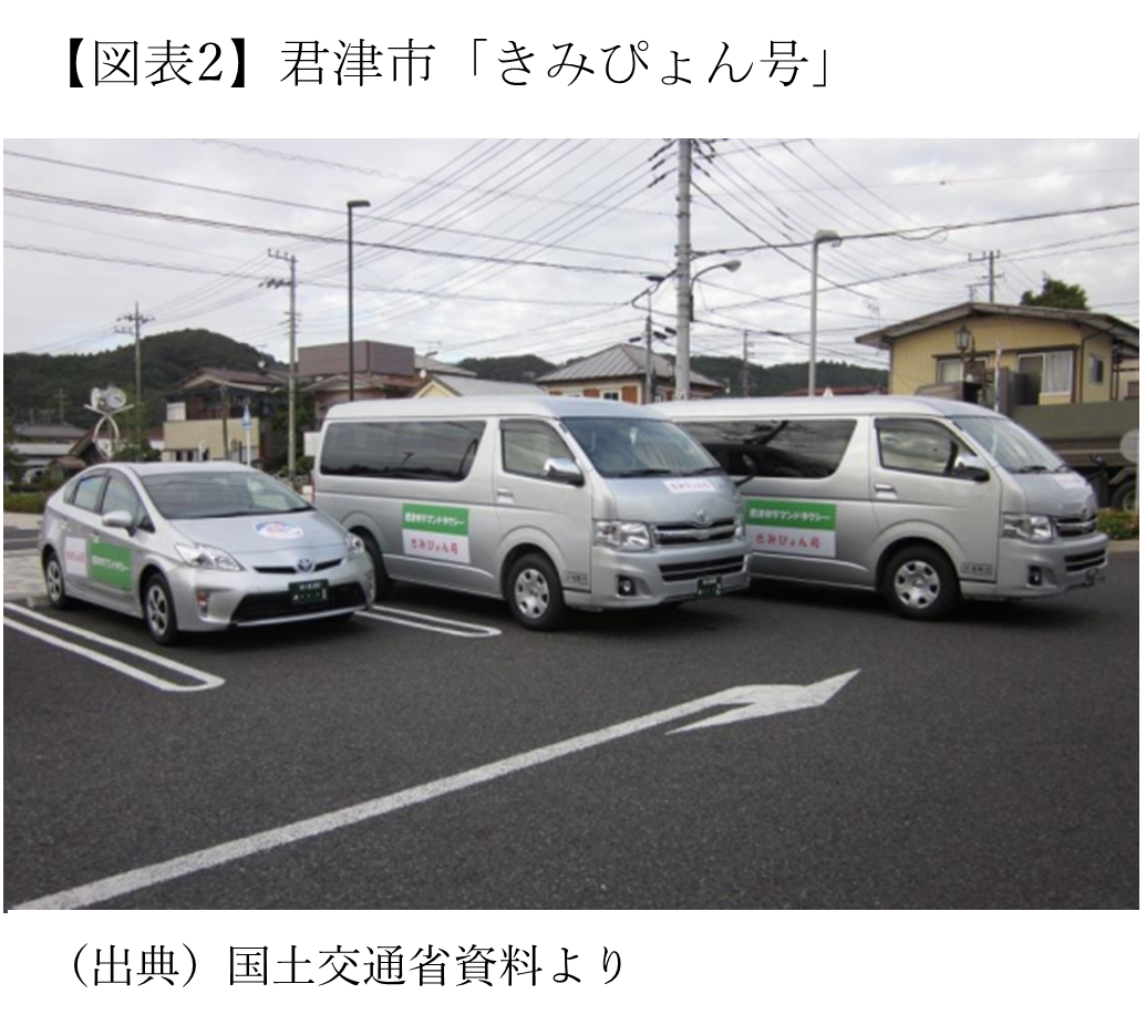 久留里線沿線の高い自動車利用率は、沿線地域の住宅が山深く点在することにも起因する。そのため、従来の路線バスでは沿線地域に交通空白地帯が生じることから、君津市は久留里線沿線の4地域(小櫃、久留里、松丘、亀山)でデマンドタクシー「きみぴょん号」の運行を行っている。きみぴょん号は、事前予約を行い、域内は共通乗降場や自宅の前などの事前に登録した場所で乗降することができる。そのため、地域住民にとって利便性の高い交通手段になっている。さらに、土・日・祝には地域外の観光客も利用することができ、観光の足としての役割も果たしている。一方で、地域の足や観光手段という観点では、久留里線と競合関係にもなっている。