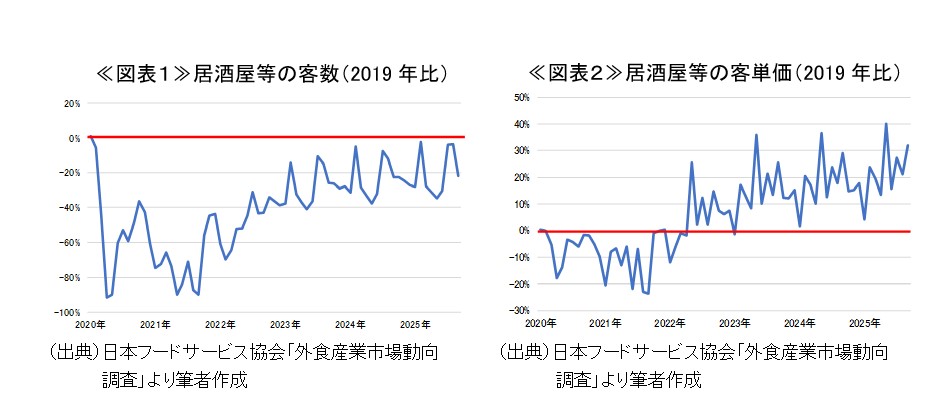 - 本稿では、一般社団法人日本フードサービス協会「外食市場動向調査」における「居酒屋」と「パブ・ビアホール」の合計を「居酒屋等」と記載する。