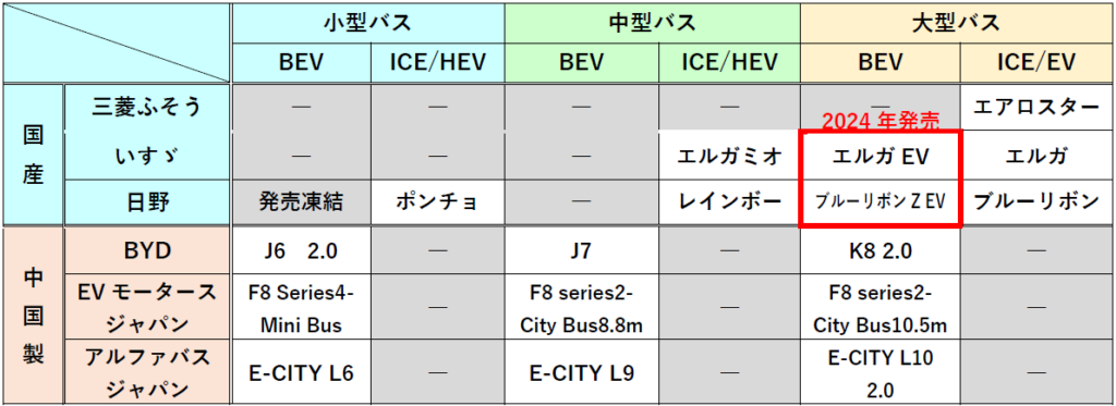 小型バスでは、国産車では日野のポンチョしか選択肢しかありません。 ポンチョは自治体のコミュニティバスに多く採用されている車両で、地域の足として自動運転の実証実験に取り組む自治体では、このような小回りの利く小型バスへのニーズが高い状況です。日野からは2022年にBEV仕様の「ポンチョZ EV」の発売計画がありましたが※6、製造を受託予定だった中国BYDが六価クロムを製造工程に使用していたことが発覚し※7、発売凍結となってしまいました※8。