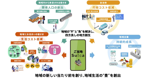 地域の鉄道利用だけでなく、駅周辺の商業施設、観光施設、イベント、さらに自治体のサービスとも連動し、地域でお金を使うほどデータと価値が地域側に蓄積される仕組みを志向している点が重要である。従来の観光MaaS(Mobility as a service)やポイント施策は、移動や消費を「便利にする」ことに主眼が置かれてきたが、ご当地Suicaが目指すのは、地域経済におけるお金の流れとデータの流れそのものを可視化し、それを利用してブラッシュアップしていくところにある。