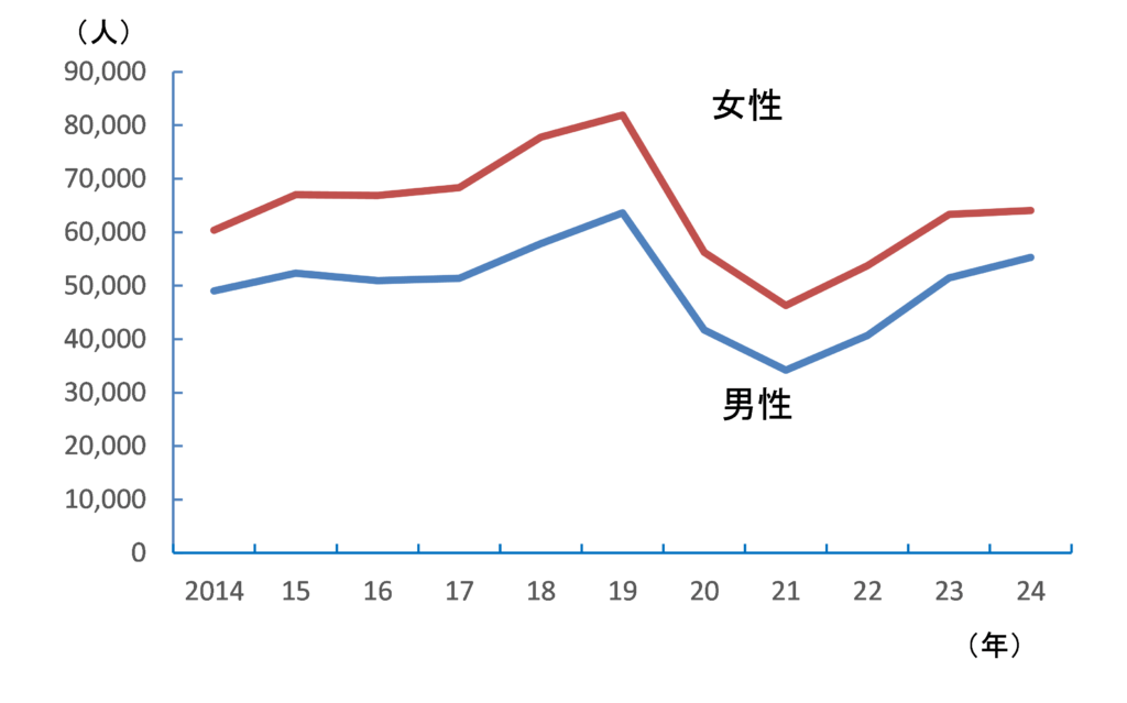 【図表1】東京圏(東京都、神奈川県、千葉県、埼玉県)の転入超過数の推移(日本人)